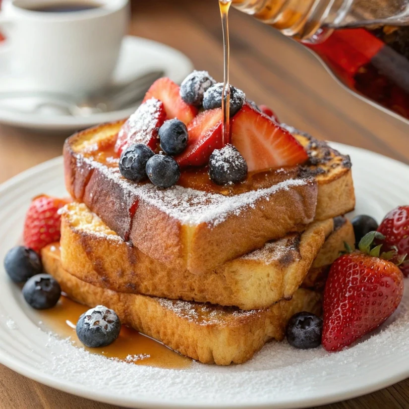- Bananas Foster French Toast: Topped with fresh bananas flambe with dark rum, banana liqueur, brown sugar, and butter.
